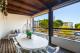 Die Wohnung liegt im ersten Stock und verfügt über eine geräumige Küche, die sich in günstiger Lage neben dem offenen Wohn- und Essbereich befindet. Von hier aus führen Schiebetüren auf einen nach Westen ausgerichteten Balkon – ideal, um die Nachmittagssonne zu genießen. Der Balkon verfügt über eine Rollo-Markise, die bei Bedarf für Privatsphäre und Schatten sorgt.
