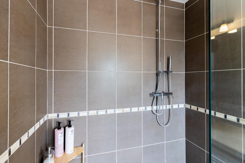 Zwei Schlafzimmer verfügen über eigene Badezimmer, während ein drittes Familienbad den übrigen Zimmern dient.