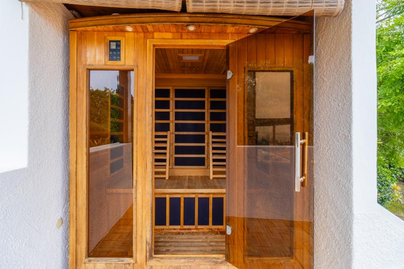 Eine Dachterrasse wurde geschaffen, um die Sonnenuntergänge in vollen Zügen zu genießen, und verfügt über eine Sauna mit spektakulärem Meerblick – ein einzigartiger Ort für entspannte Momente.