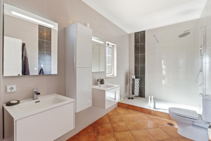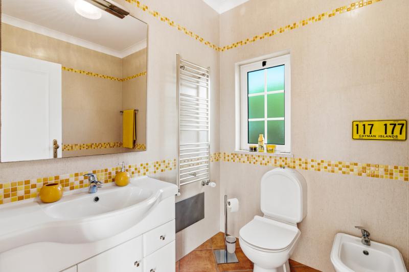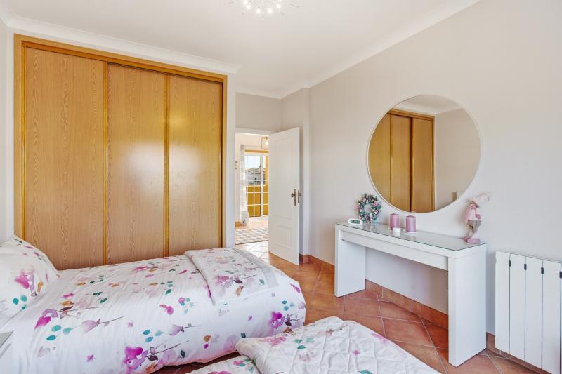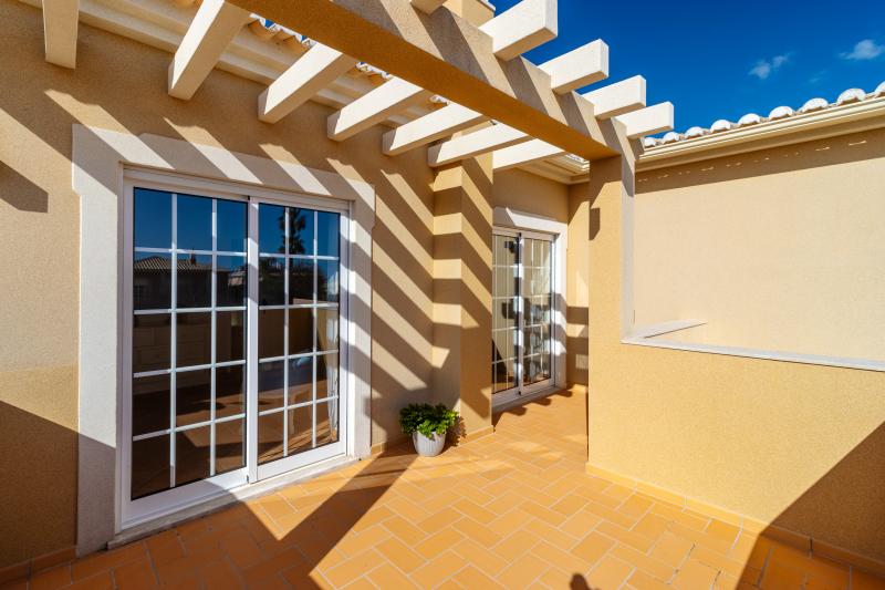Zwei weitere Schlafzimmer teilen sich ein Familienbad mit Badewanne. Alle Schlafzimmer sind mit Einbauschränken, Klimaanlage, doppelt verglasten Fenstern und elektrischen Rollläden ausgestattet und bieten somit hohen Komfort und Energieeffizienz.