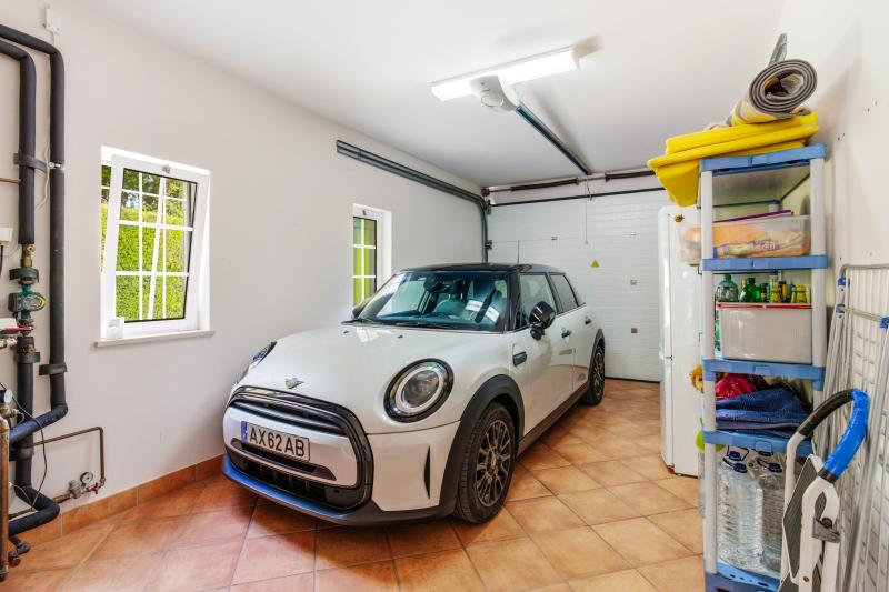 Im Erdgeschoss befinden sich außerdem ein Schlafzimmer, ein Badezimmer, eine große Garage mit Abstell- und Waschbereich sowie ein zusätzlicher Abstellraum.