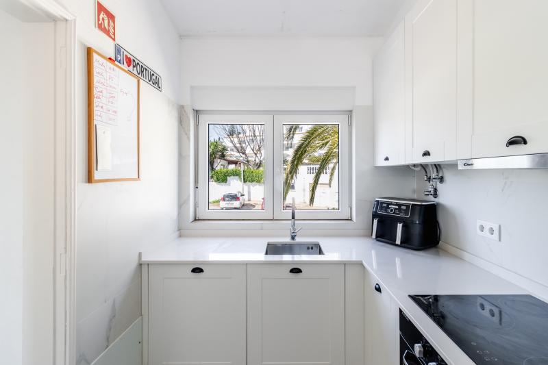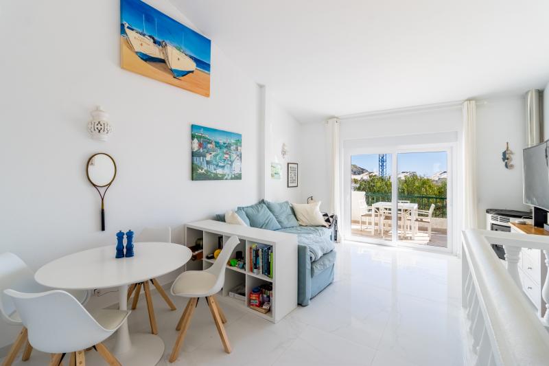 Ein paar Stufen führen zum Eingang und in den hellen, offenen Wohn-, Ess- und Küchenbereich. Der gesamte Raum wurde komplett modernisiert und strahlt nun eine zeitgemäße und einladende Atmosphäre aus. Die Raumaufteilung ist fließend und eignet sich ideal zum Entspannen und für gesellige Runden. Von dieser Etage aus bietet ein charmanter Balkon einen wunderschönen Meerblick bis nach Praia da Luz – der perfekte Ort für einen Morgenkaffee oder einen Drink am Abend, während Sie die Sonne der Algarve genießen.