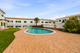 Vom Wohnbereich aus führen Türen auf eine private Terrasse, die sich ideal zum Essen im Freien oder zum Entspannen eignet und direkt zum Gemeinschaftspoolbereich übergeht.