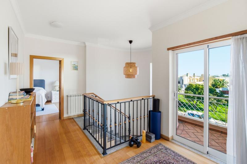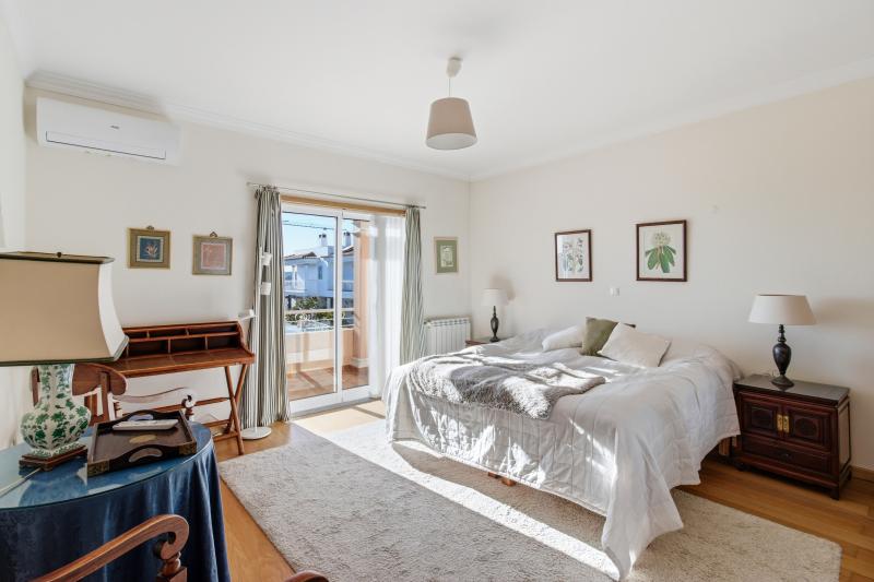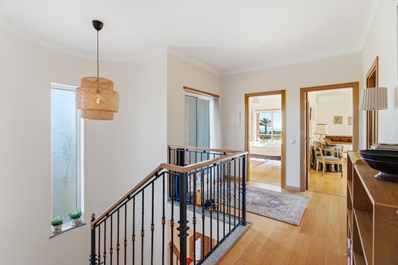 Im Obergeschoss befinden sich drei Doppelzimmer, alle mit Einbauschränken, Klimaanlage und Zugang zu privaten Balkonen. Das Hauptschlafzimmer verfügt über ein eigenes Badezimmer mit Whirlpool-Badewanne und einen nach Osten ausgerichteten Balkon. Die weiteren Schlafzimmer teilen sich ein Familienbad und haben Zugang zu einem nach Westen ausgerichteten Balkon mit Blick auf den Garten.