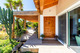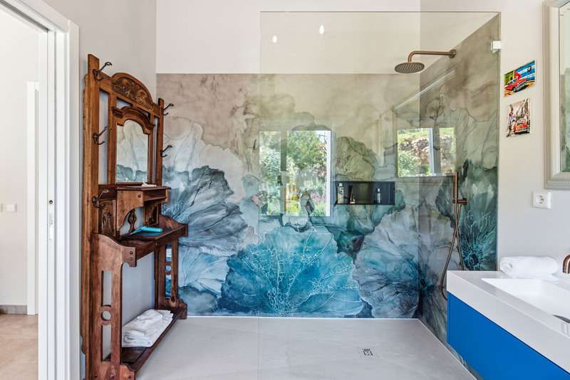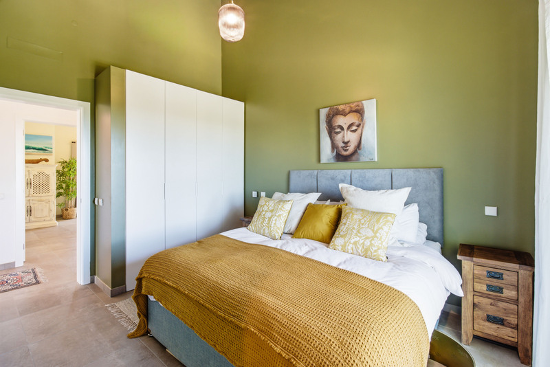 Weiter durch das Haus führen Sie die eleganten Holzdetails zu den Schlafzimmern. Die Master-Suite bietet einen gemütlichen und zugleich raffinierten Rückzugsort mit gewölbten Decken und direktem Zugang ins Freie. Das luxuriöse Bad ist ganz auf Genuss ausgelegt und verfügt über Doppelwaschbecken, eine markante freistehende Badewanne und eine begehbare Dusche mit einer unverwechselbaren Designwand. Zwei weitere Schlafzimmer sind ebenso geräumig und wunderschön eingerichtet, jedes mit einem eigenen, einzigartig gestalteten Bad, das Komfort und Privatsphäre für Familie oder Gäste bietet.