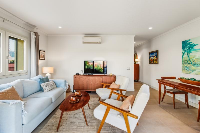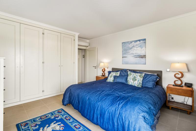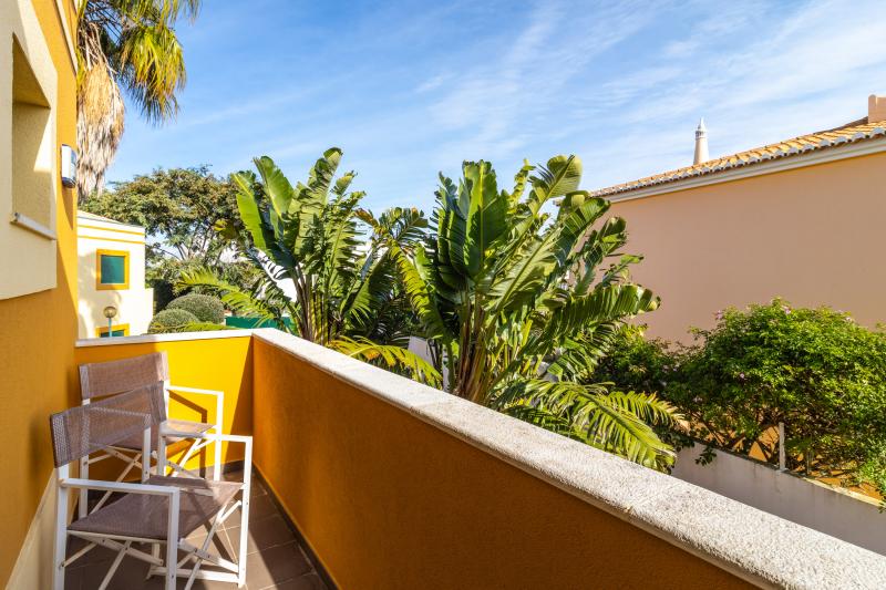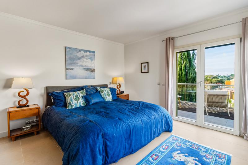 Upstairs, the spacious bedroom opens onto a sunny balcony which offers panoramic sea views that stretch across the gardens to the ocean. The main bathroom is also located on this floor, along with an east-facing balcony that captures beautiful morning light and the striking cliffs of Praia da Luz.