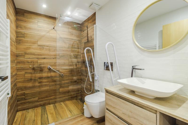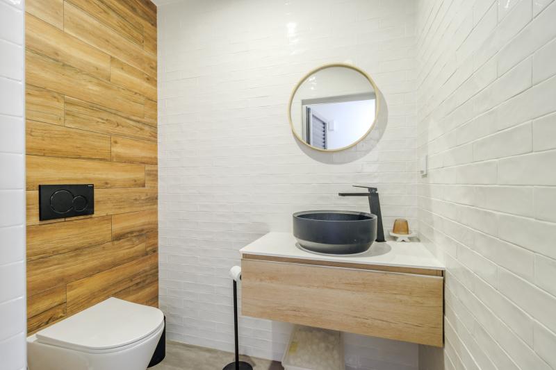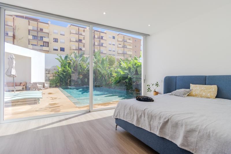 Ascending to the first floor, the villa's main living space unfolds, showcasing an open-plan, fully equipped kitchen, dining area, and living room that seamlessly transitions to a tropical-inspired outdoor space. This area epitomizes the essence of indoor-outdoor living. The first floor also houses the luxurious master suite, complete with a large bathroom featuring a walk-in shower. Additionally, there are two generous bedrooms that share a spacious family bathroom, also equipped with a walk-in shower.