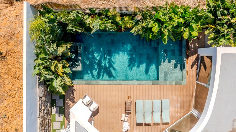 The outdoor area is a true sanctuary—super private and exuding the ambiance of an exotic retreat.