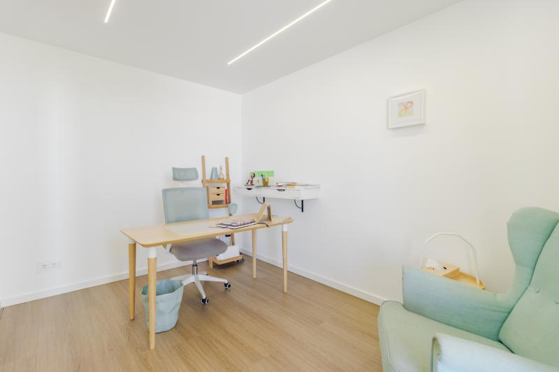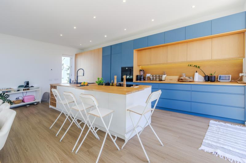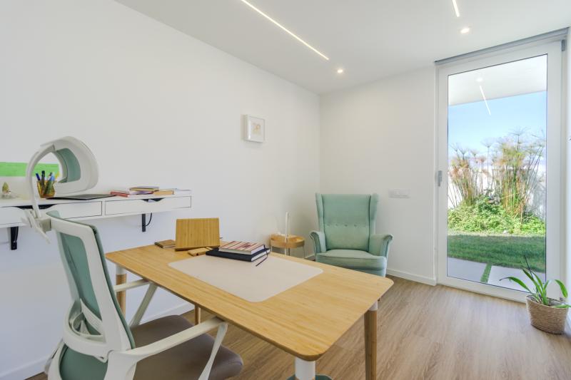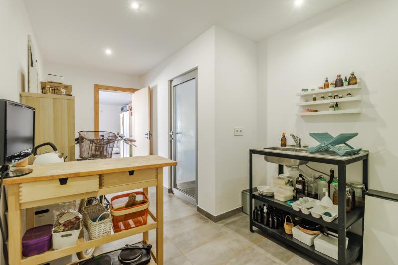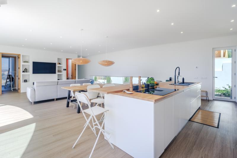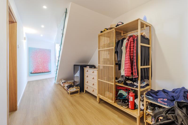 The ground floor also accommodates the technical spaces, including areas designated for the solar panels that provide electricity and hot water, as well as air conditioning units for the downstairs area.