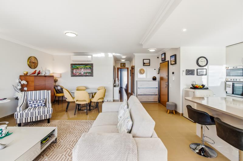 This room opens onto a large south-southeast facing terrace where you can enjoy outdoor meals protected from the sun by electric awnings, from which you can enjoy the fantastic open view of the golf and Lagos Bay.