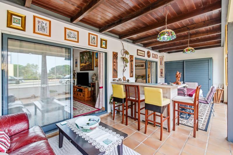 One of the standout features of this property is the huge, glass-enclosed terrace, accessible from the living space. This versatile area provides an additional lounge, and dining zone and is perfect for year-round enjoyment, social gatherings, or relaxing in comfort. As it is a ground floor unit, it benefits from a huge terrace which has been glassed in, providing an additional living and dining area - the perfect spot for entertaining. There is also still an area outside