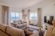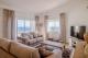 A large entrance hall leads through to a large living and dining area which has those fantastic sea views. There is also a lovely sunken seating area in the living room by the wood burning fire. Sliding doors lead out to an expansive terrace where you can enjoy those incredible views out to sea. Just off the dining area, you find the spacious kitchen which is bright and modern and has a large island which creates extra storage.