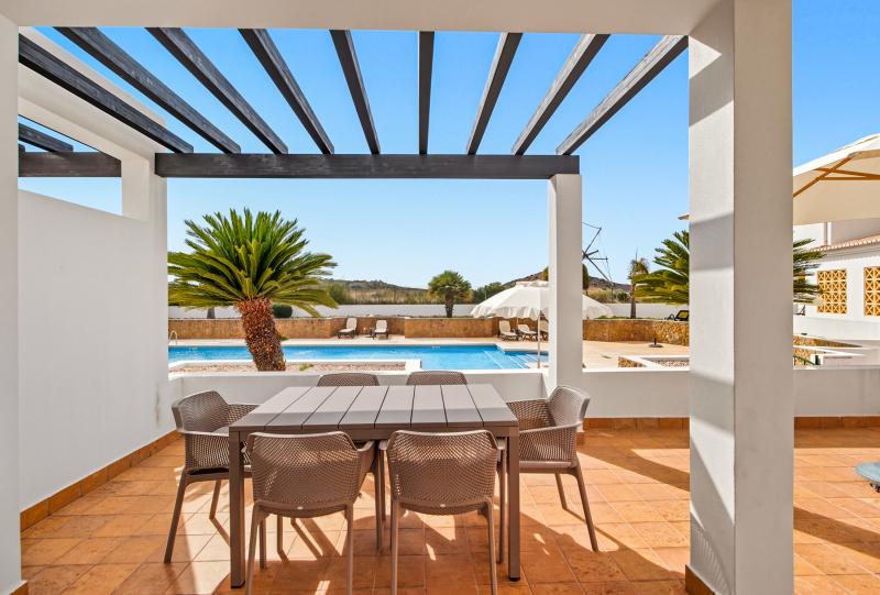 Utanför finns gott om utrymme att koppla av runt den stora poolen, och ägarna har också tillgång till jacuzzi, träningsområde med stationära cyklar och en bekväm toalett vid poolen.