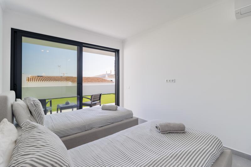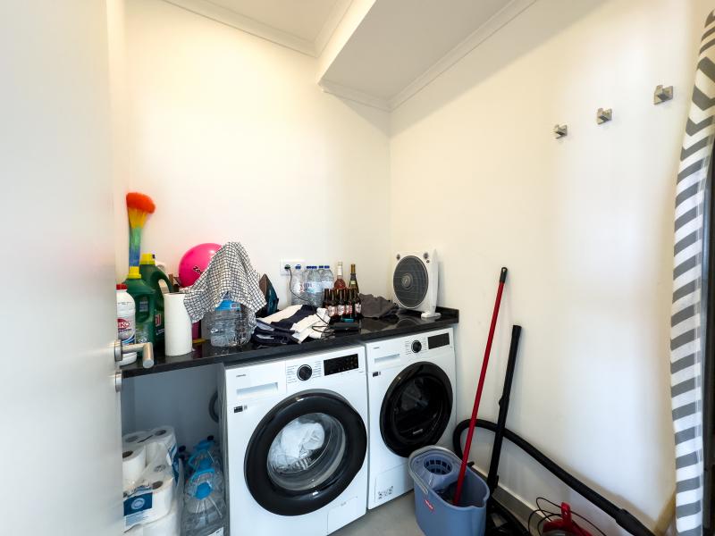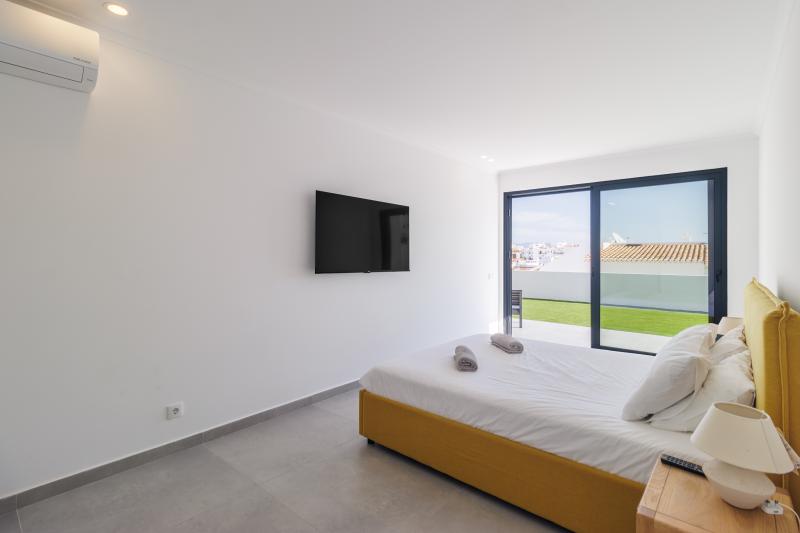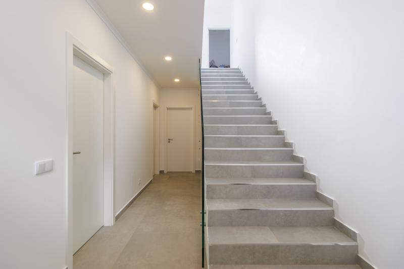 The main floor features a bright, open-plan living, dining, and kitchen area that flows seamlessly onto a balcony—perfect for soaking up the Algarvian sunshine. This level also includes a guest bathroom and a convenient laundry room.