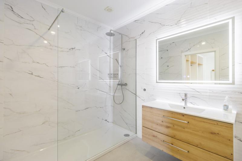 Downstairs, you’ll find three ensuite bedrooms, including a master suite with a spacious dressing room. Each bedroom offers direct access to the garden, creating a natural connection between indoor and outdoor living.
