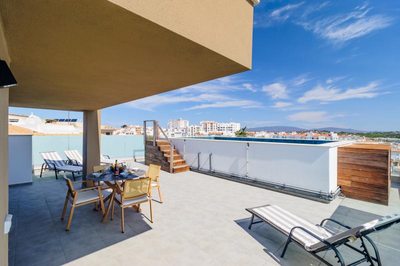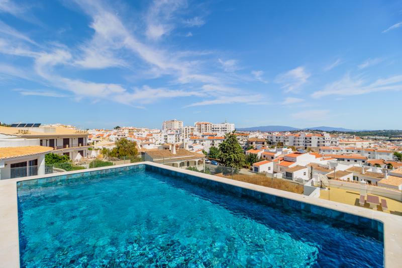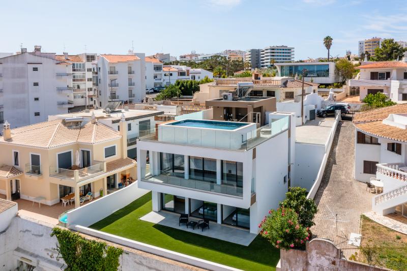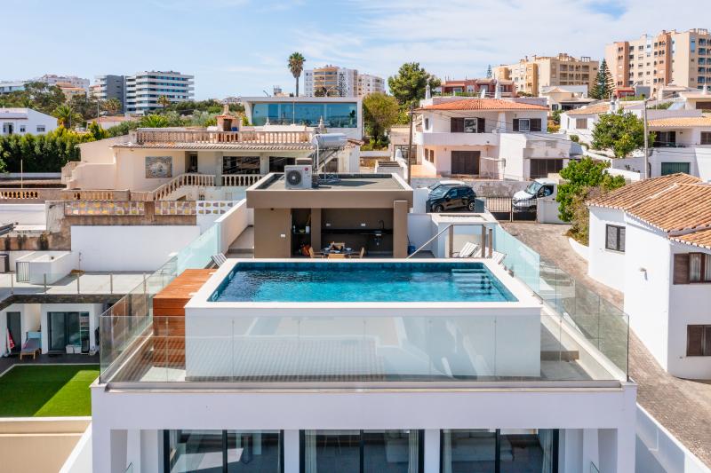 As you enter this newly built three-bedroom villa, you are immediately greeted by breathtaking views over the city of Lagos and the bay of Meia Praia.