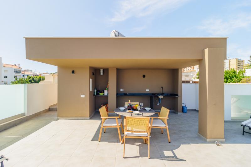 The rooftop is a true highlight, boasting a private swimming pool, barbecue area, and a covered terrace—an ideal space for entertaining or simply relaxing while enjoying panoramic views.