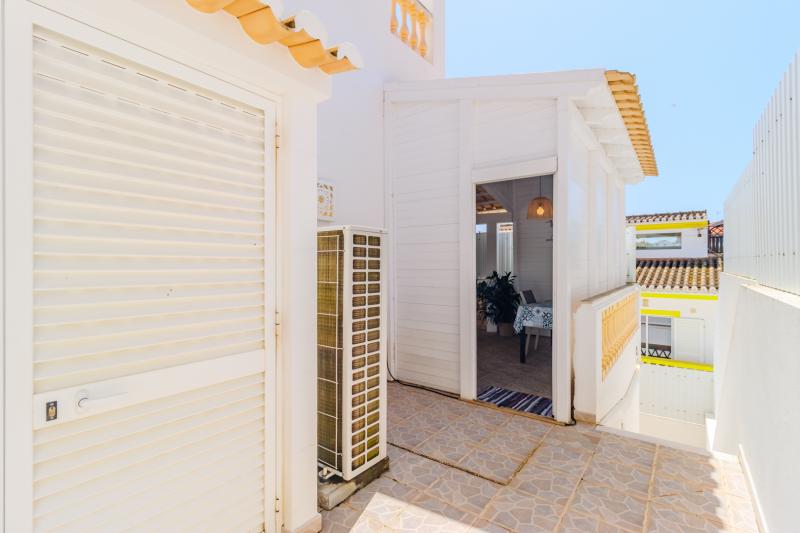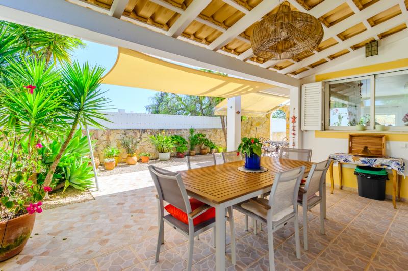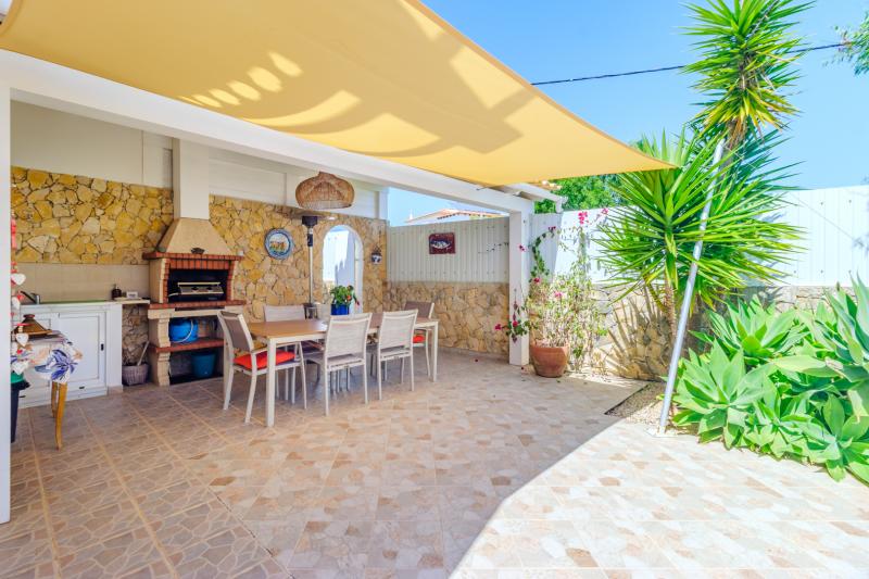 Fastigheten är utrustad med centralvärme via en värmepump som även värmer poolen – vilket ger komfort året runt. Intill köket finns också en täckt matplats med inbyggd grill, perfekt för måltider utomhus.