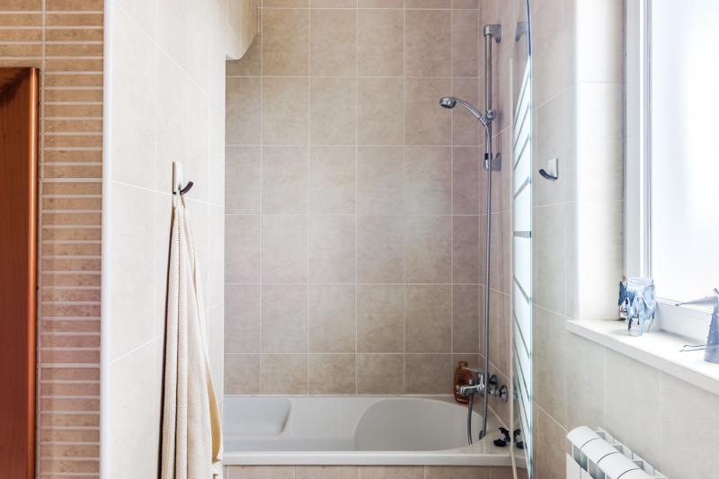 Bottenvåningen har ett sovrum med eget badrum – idealiskt för gäster eller för den som vill bo på ett plan.