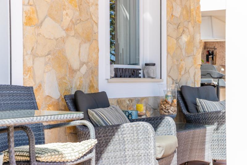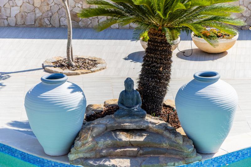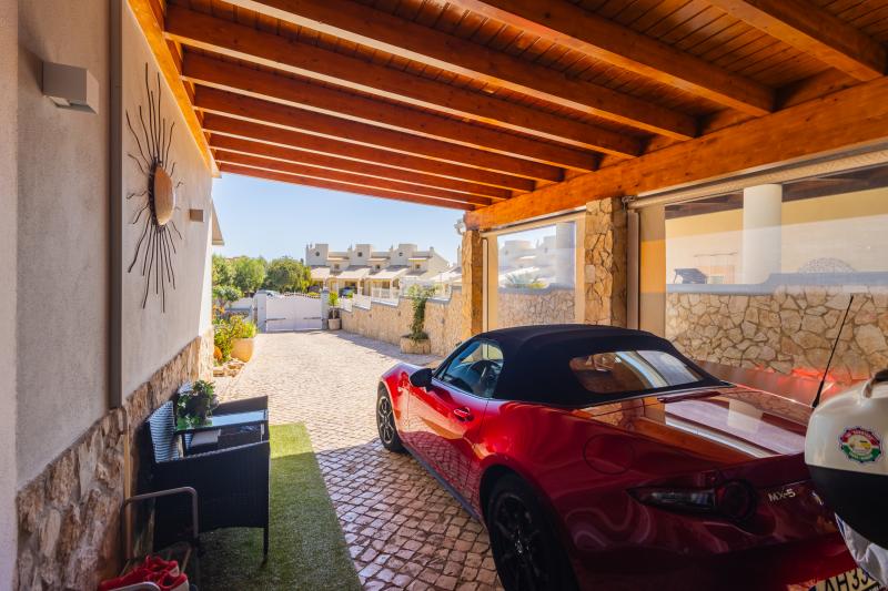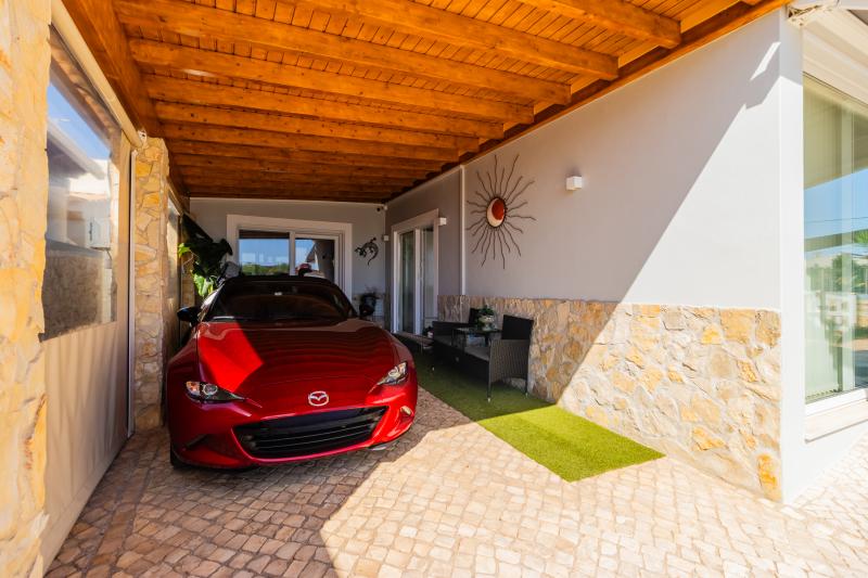 Utomhus finns ett fullt utrustat utekök och bar, perfekt för underhållning och för att njuta av kvällarna i Algarve. Den uppvärmda poolen med vattenfall och jacuzzi kompletteras av belysning och rymliga avkopplingsområden som erbjuder både sol och skugga. Ett carport med laddare för el-/hybridbil och vackert anlagda trädgårdar med fruktträd fullbordar exteriören.