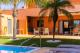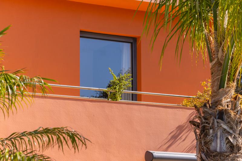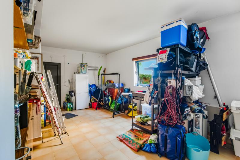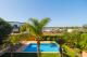 Bottenvåningen har en ljus och öppen planlösning som binder samman kök, matsal och vardagsrum – perfekt för ett avslappnat vardagsliv eller för att bjuda in familj och vänner. Stora skjutdörrar leder ut till en rymlig terrass med pool, grillplats och en frodig trädgård med tropiska växter och fruktträd – din egen lilla oas.