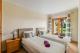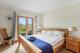 På övervåningen finns tre dubbelrum – ett med eget badrum och de andra delar familjebadrum. Två av sovrummen har också tillgång till en vacker terrass med utsikt över havet och trädgården i fjärran.
