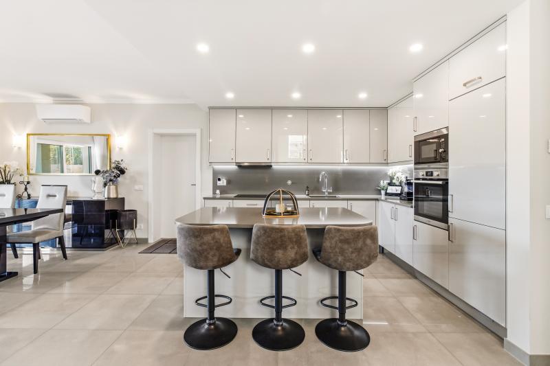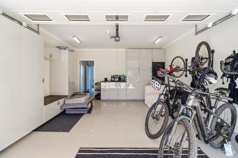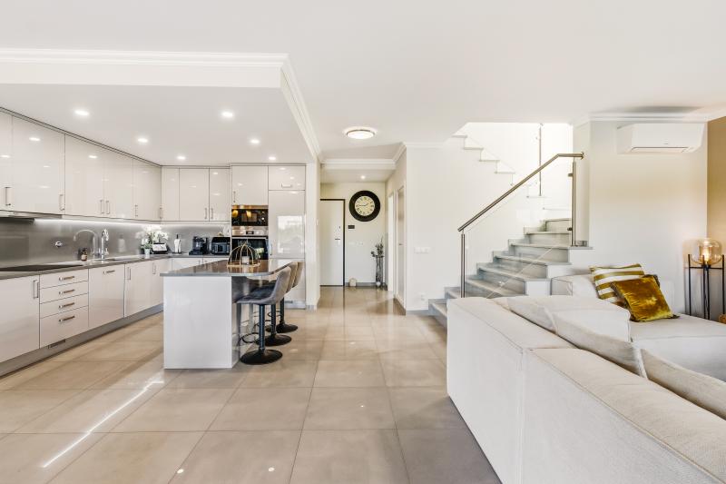 Villans design fokuserar på ljus, rymd och ett naturligt flöde mellan inomhus- och utomhusmiljöer. På entréplanet binds det öppna köket, matplatsen och vardagsrummet samman med den västvända uppvärmda poolen och de soliga terrasserna. Funktionaliteten är genomgående, med bland annat en vinterterrass som kan glasas in för att skapa extra sällskapsyta. Köket är utrustat med köksö, fullt integrerade vitvaror och en planlösning som passar både vardagsliv och sociala tillställningar.