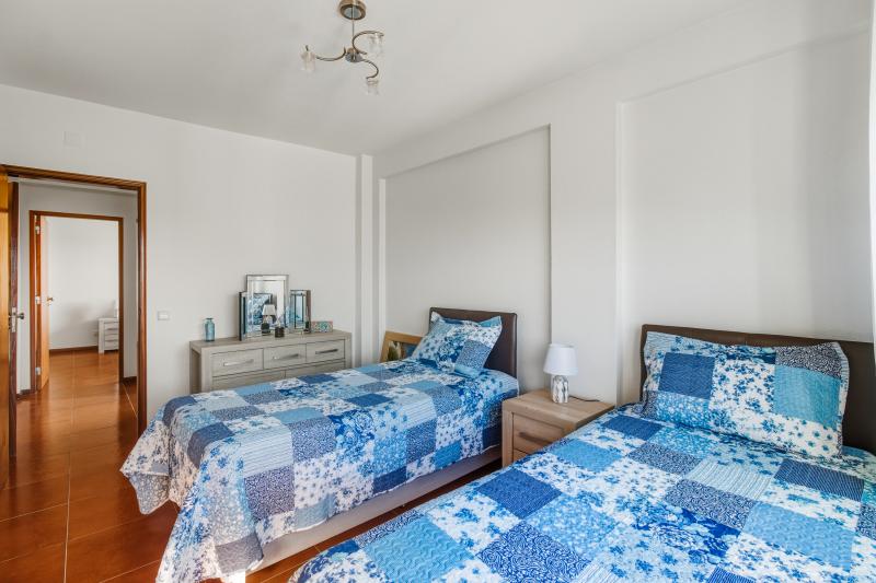 En separat hall leder till sovrumsdelen. Det stora sovrummet ligger till vänster och har vacker havsutsikt över Meia Praia samt en egen balkong – en idealisk plats att njuta av morgonsolen på. På motsatt sida ligger det andra sovrummet, som för närvarande är inrett som ett tvåbäddsrum. Det är rymligt och har inbyggda garderober. Ett familjebadrum ligger bekvämt mellan de två sovrummen.