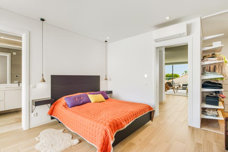 Auf derselben Etage befindet sich ein wunderschön eingerichtetes Schlafzimmer mit eigenem Bad sowie eine Gästetoilette. Eine markante offene Treppe führt Sie dann in den ersten Stock, wo sich das Hauptwohnzimmer mit direktem Zugang zu einem großen Balkon mit Meerblick befindet. Das Wohnzimmer verfügt außerdem über einen Gaskamin, der sich perfekt für Winterabende eignet. Auf dieser Etage befindet sich auch die Master-Suite mit begehbarem Kleiderschrank, luxuriösem Bad und eigenem Balkon mit herrlichem Blick über die Stadt.