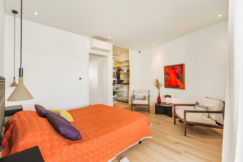 Der zweite Stock bietet einen weiteren Wohnbereich, der geschickt mit einer Küche und Zugang zu einem weiteren Balkon ausgestattet ist, von dem aus der weite Blick auf das Meer noch spektakulärer wird. Auf dieser Ebene befinden sich außerdem ein zusätzliches Schlafzimmer und ein Familienbadezimmer.