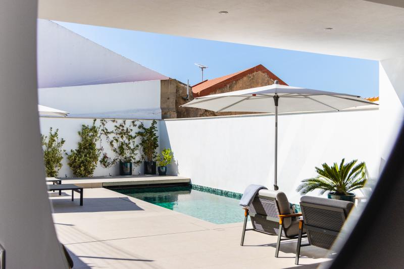 Versteckt hinter einem charmanten Innenhof, offenbart sich dieses versteckte Juwel, sobald Sie es betreten. Der Eingangsbereich öffnet sich zu einer geräumigen offenen Küche und einem Essbereich, die mit raumhohen Fenstern ausgestattet sind, die den Raum mit Tageslicht durchfluten und nahtlos mit der Außenterrasse verbunden sind. Hier finden Sie einen privaten Swimmingpool und einen Bereich zum Sonnenbaden, eine perfekte Oase mitten in der Stadt. Jedes Detail wurde sorgfältig durchdacht – von den hochwertigen Geräten bis hin zum originalen Mauerwerk, das auf die Vergangenheit des Hauses als Ruine hinweist.