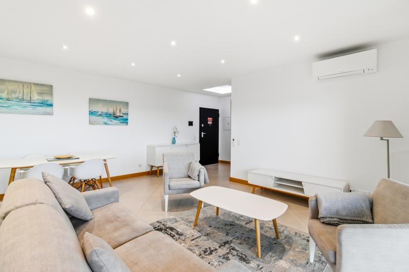 Designed for year-round comfort, the apartment is equipped with air conditioning, underfloor heating in the bathrooms, solar panels for hot water, electric shutters, and a central vacuum system.