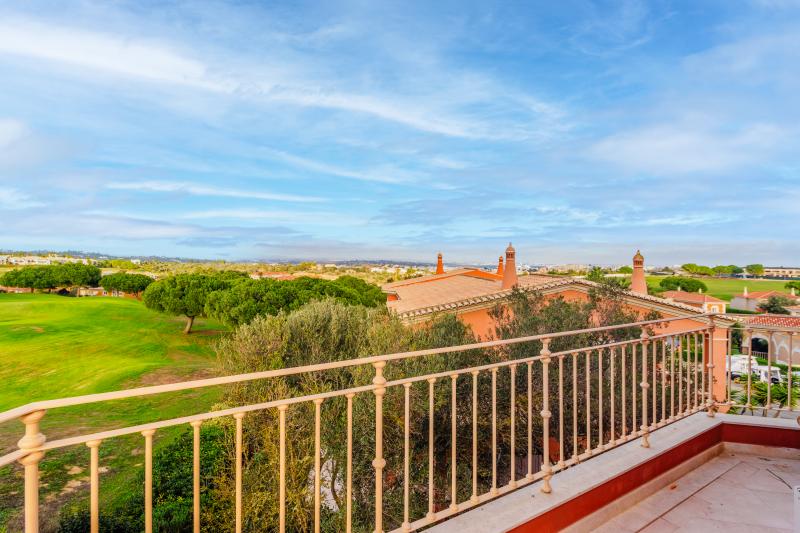 Upstairs, there are two further bedrooms, each with private en-suite bathrooms and direct access to a spacious wrap-around terrace, providing plenty of outdoor space to soak up the Algarve sunshine. At the front of the property, a further enclosed balcony area features concertina glass panels, making it a versatile and enjoyable space throughout the year. From here, you can take in panoramic views across the resort and toward the mountains in the distance.