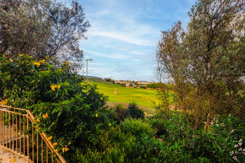 You enter into a welcoming hallway that leads through to a bright and spacious open-plan living, dining, and kitchen area. From the living room, large patio doors open onto a generous terrace overlooking the lush fairways of the golf course – the perfect spot to enjoy morning coffee or sunset views. Also on this level, you’ll find one of the bedrooms, which has its own private balcony, and a convenient guest bathroom.