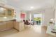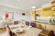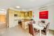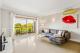 La cuisine ouverte entièrement équipée est dotée d'appareils électroménagers encastrés et s'ouvre directement sur une élégante salle à manger. De grandes baies vitrées coulissantes donnent directement sur une autre terrasse, créant ainsi une belle continuité entre l'intérieur et l'extérieur. La deuxième chambre se trouve également à cet étage, à côté de la salle de bains familiale spacieuse.