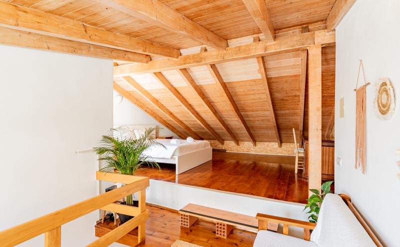 Trois au rez-de-chaussée et un grand mezzanine avec une chambre supplémentaire, un espace de vie supplémentaire et du rangement.