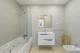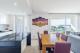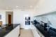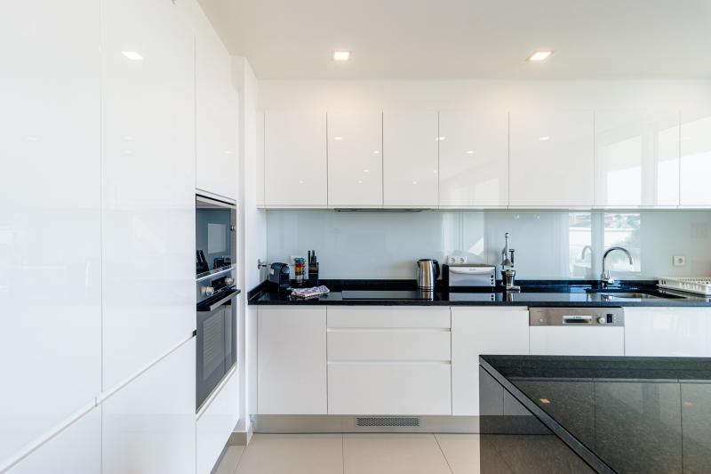 Lägenheten är inredd med exceptionell standard och har en ljus öppen planlösning som smidigt förbinder kök, matplats och vardagsrum. De flyter ut på en rymlig balkong som är idealisk för uteservering och avkoppling. Det moderna köket är fullt utrustat med Bosch-vitvaror, bänkskivor i granit och en central köksö – perfekt för både matlagning och umgänge.