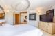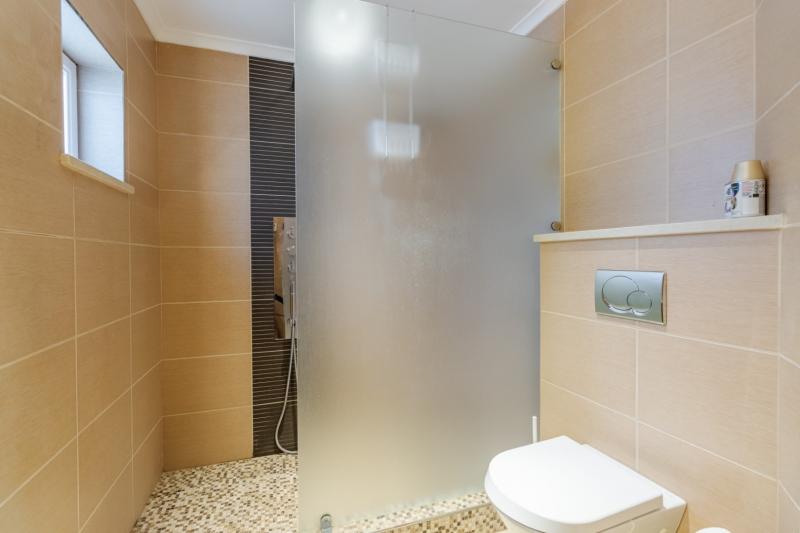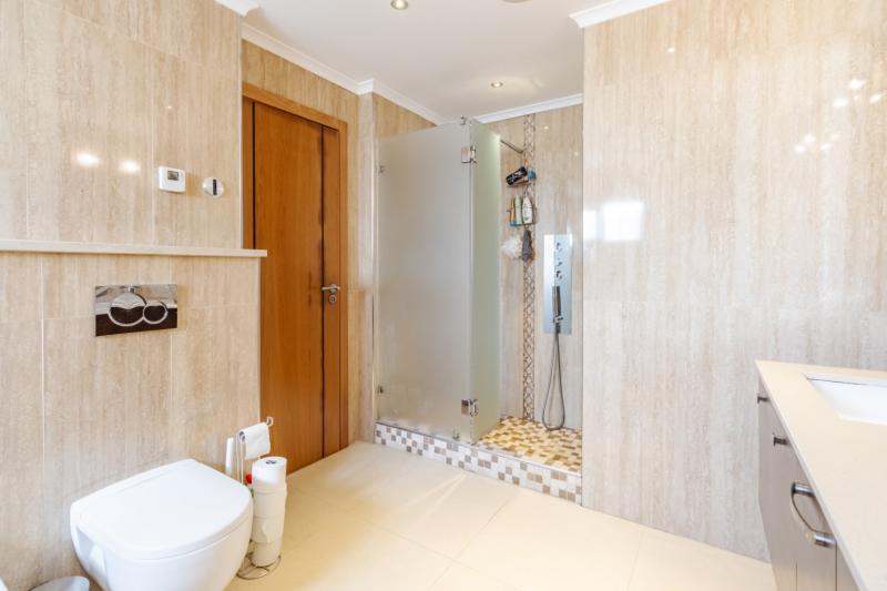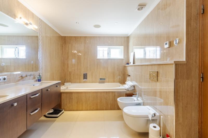 På den lägre nivån finns det 4 sovrum. Master-sviten har en super king size-säng, garderober och ett eget badrum med dusch och bubbelbadkar. Ett av de andra sovrummen har också eget badrum, och de andra två delar familjens badrum.