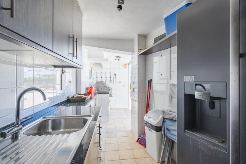Vardagsrummet och matsalen med öppen planlösning är den perfekta platsen för underhållning. Dörrar leder till en rymlig terrass som har utsikt över poolen och har en elektrisk markis för skugga. Det stora köket är fullt utrustat och flyter sömlöst från matplatsen. Det finns också en gästtoalett och ett tvättstuga på denna nivå, som också kan användas som kontor.