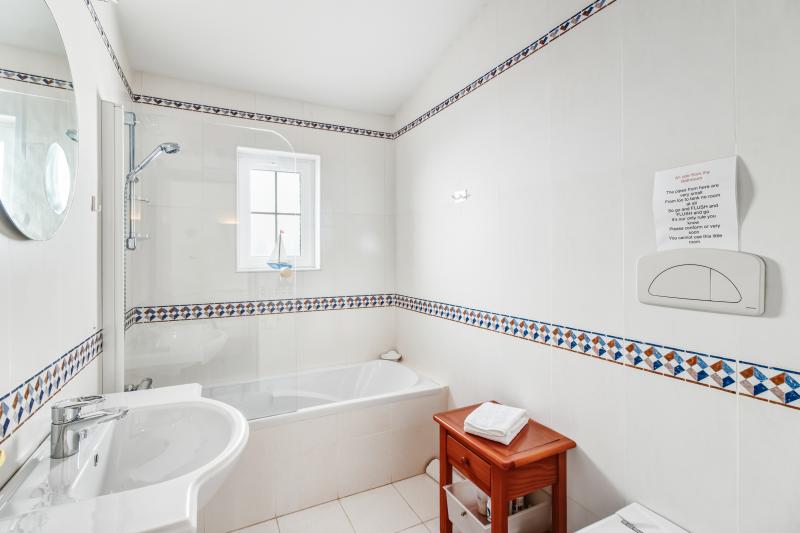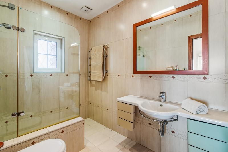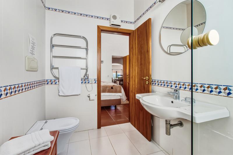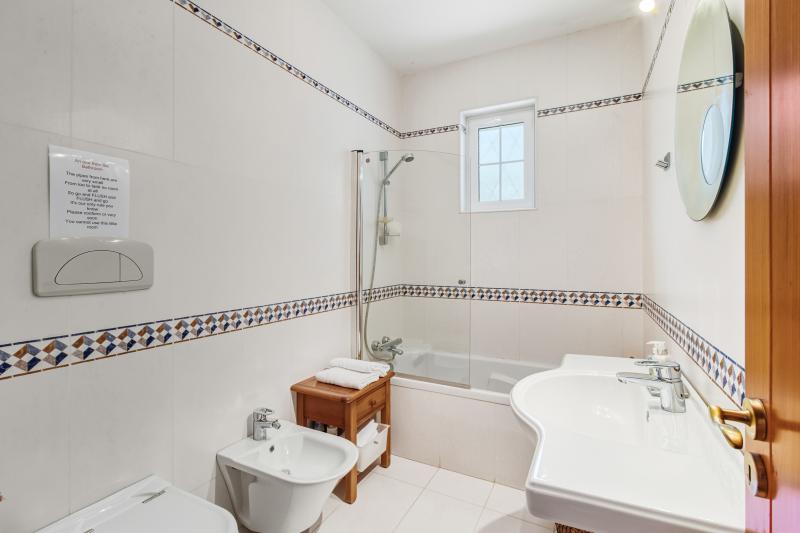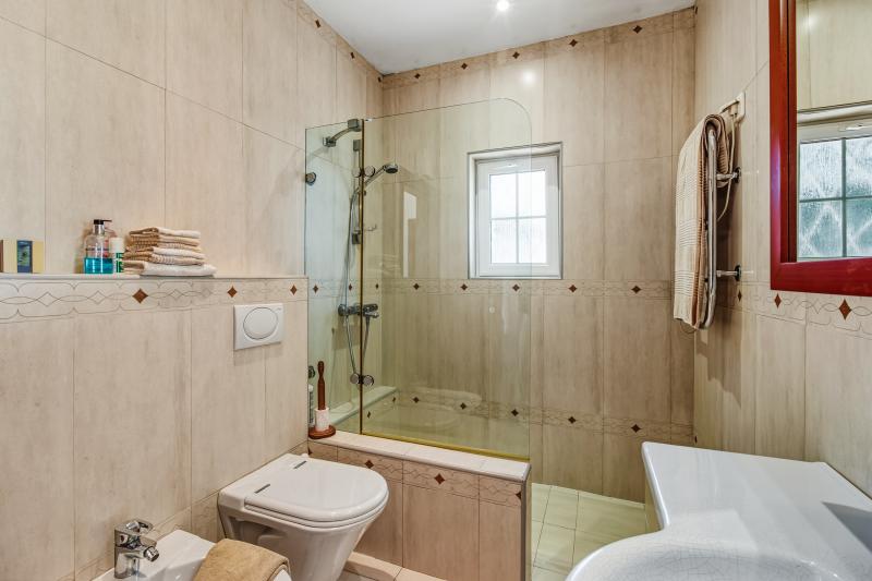 Det stora sovrummet, som ligger på fastighetens västra sida utanför vardagsrummet, har ett eget badrum och direkt tillgång till den täckta terrassen, som vetter mot poolområdet. Två ytterligare sovrum delar ett familjebadrum; båda är utrustade med inbyggda garderober och har tillgång till egna terrasser. Det sista sovrummet, som ligger utanför matsalen, har också ett eget badrum och altandörrar som leder direkt till en terrass.
