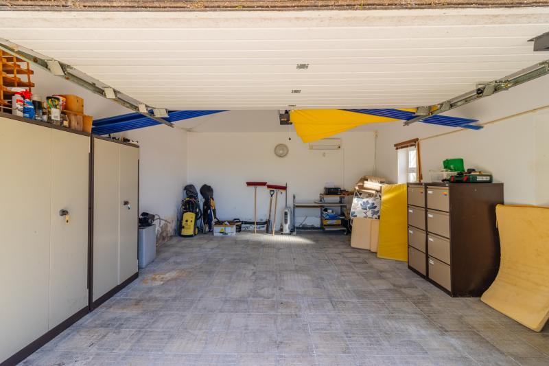 Ytterligare funktioner inkluderar ett stort privat garage med automatisk dörr, som erbjuder både säker parkering och extra förvaringsutrymme. Det finns även luftkonditionering i köket, vardagsrummet, sovrummen och garaget, samt solpaneler för varmvatten.
