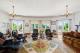 En karakteristisk cirkulär entréhall med högt kupoltak ger ett elegant första intryck och ger direkt tillgång till de viktigaste sällskapsutrymmena. Härifrån når man matsalen, som på ett praktiskt sätt separerar vardagsrummet från köket. Vardagsrummet är rymligt och fyllt av naturligt ljus från de fyra dubbla fönstren som leder ut till en fantastisk täckt terrass. Här finns också en öppen spis. Köket har skräddarsydda skåp i massivt trä och en frukostplats, med bekväm tillgång till tvättstugan och utomhusutrymmena.
