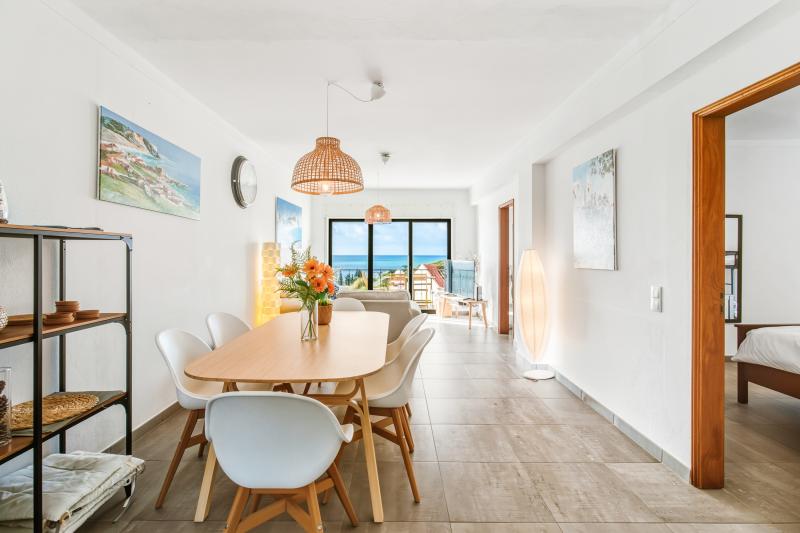 The open-plan living, dining, and kitchen area is bright and welcoming, flowing seamlessly onto a south-facing terrace — perfect for enjoying the Algarve sunshine.
