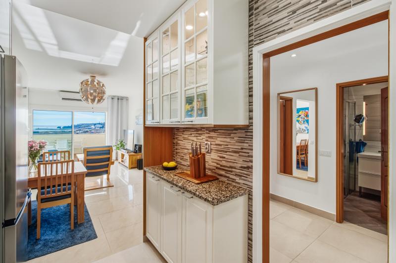 Denna vackert renoverade takvåning med ett sovrum erbjuder stil, komfort och en verkligt spektakulär havsutsikt. Så fort du kliver in genom ytterdörren breder havet ut sig framför dig – ett omedelbart och oförglömligt inslag i detta exceptionella hem.