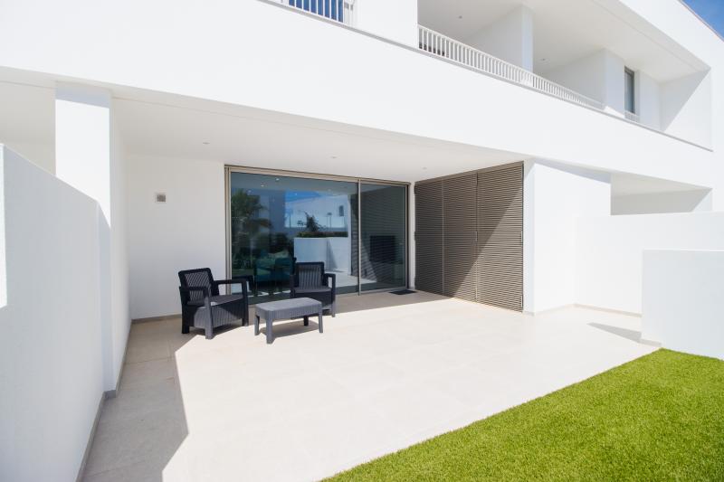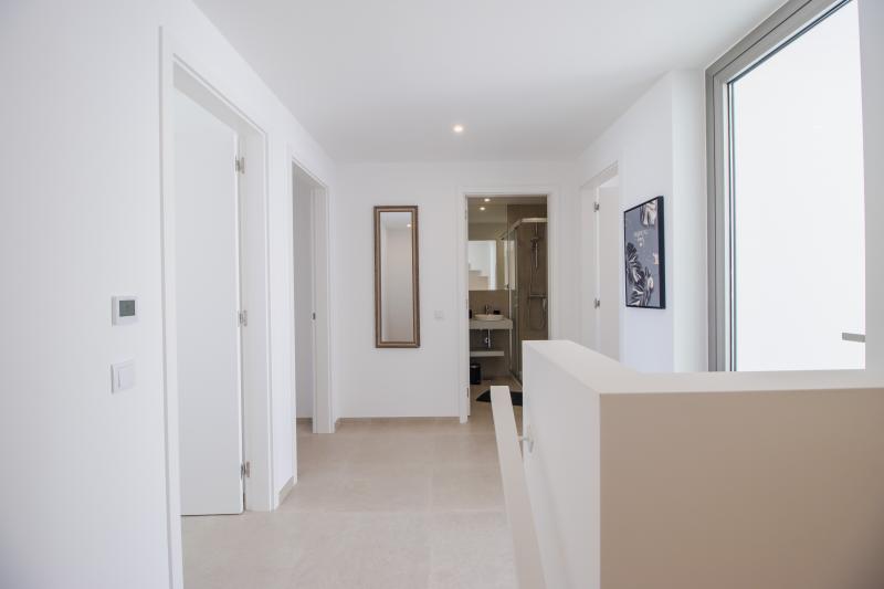 Huset är utformat för ett bekvämt liv både inomhus och utomhus och har en rymlig terrass i sydöstlig riktning, perfekt för att koppla av i solen eller njuta av skuggiga stunder under dagen. Med direkt, gated tillgång till den gemensamma poolen är ett uppfriskande dopp bara några steg från din privata utomhusyta.
