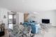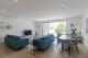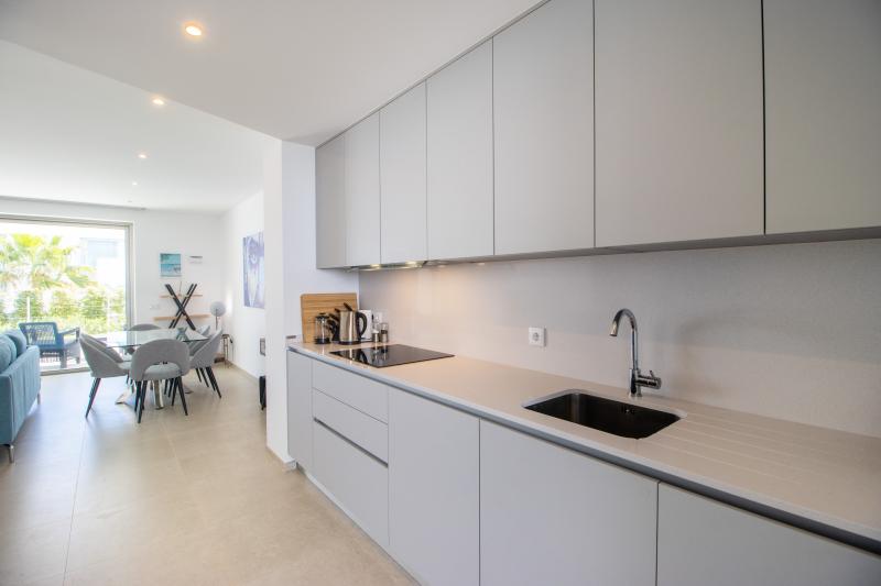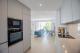 Inuti är den öppna planlösningen ljus och inbjudande, med extra stora altandörrar som fyller vardagsrummet med naturligt ljus och ansluter sömlöst till terrassen. Det fullt utrustade köket är utrustat med moderna vitvaror, inklusive elektrisk spis och ugn, tvättmaskin och diskmaskin.